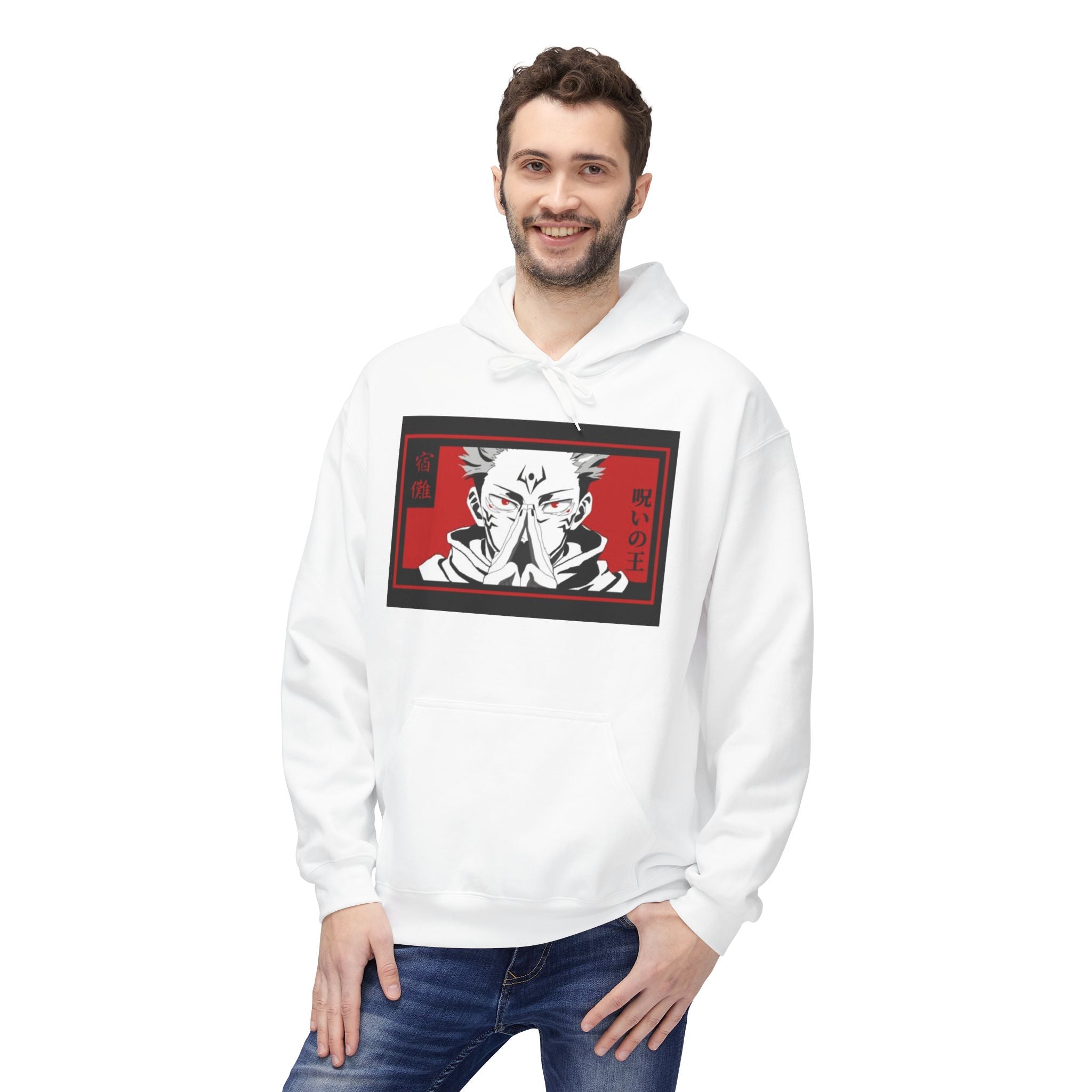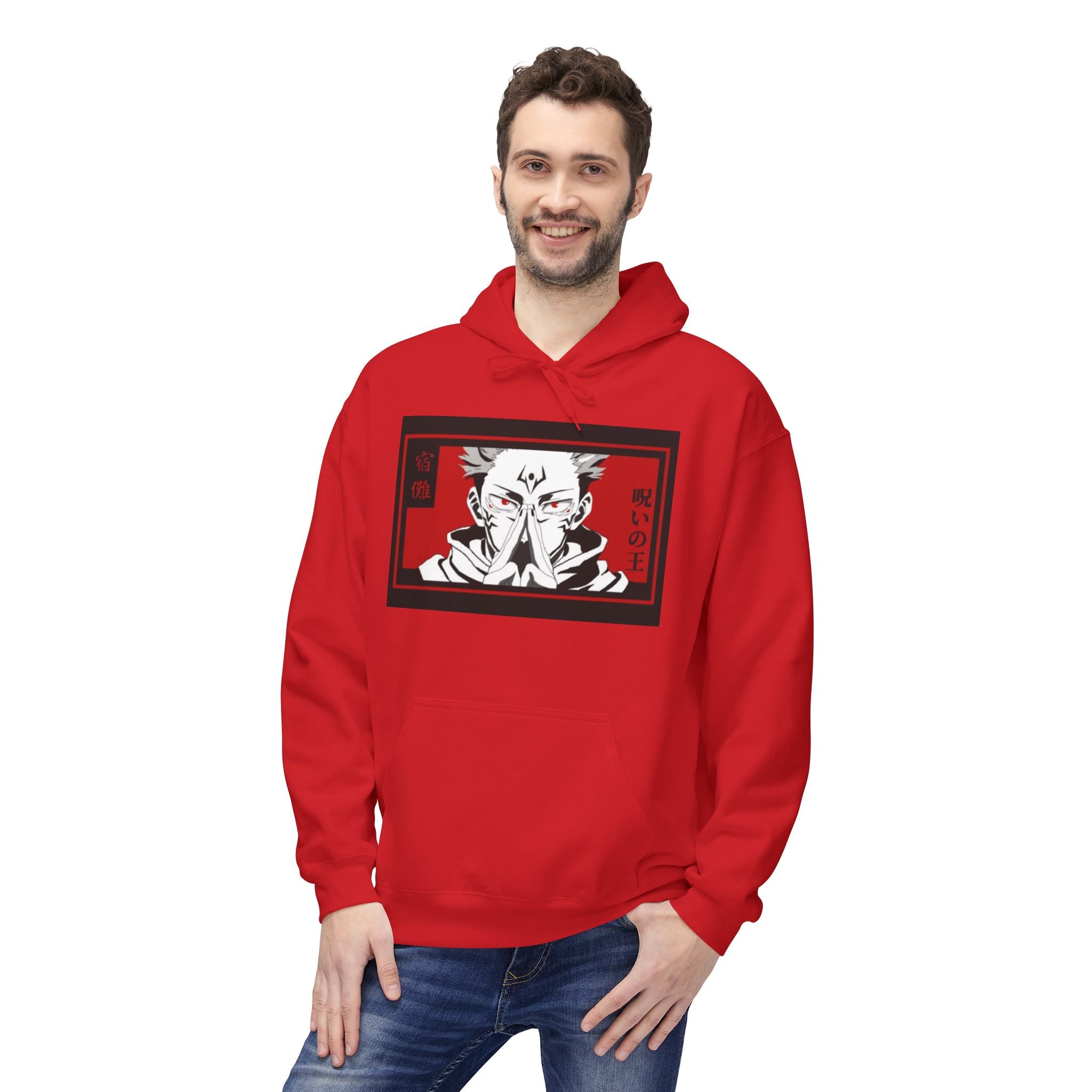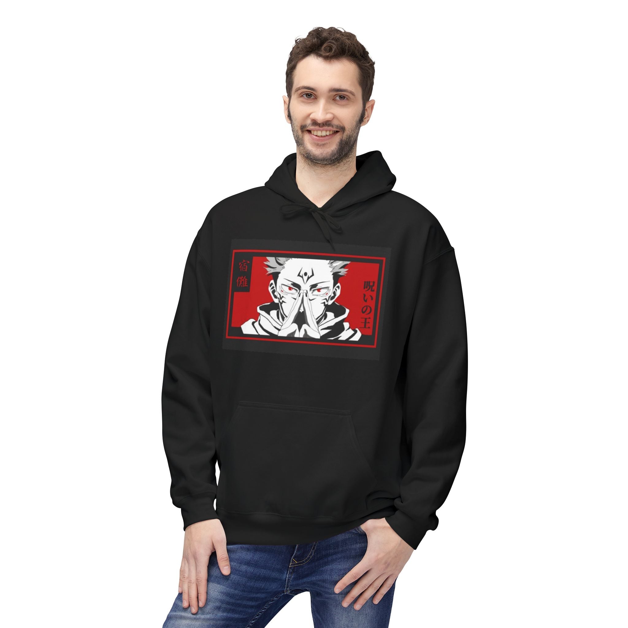 Step into the world of your favorite anime with our Sukuna Anime-Inspired Cozy Fleece Hoodie! This unisex midweight softstyle fleece hoodie is more than just a piece of clothing; it's a celebration of your fandom. Perfect for those chilly days, it combines comfort with eye-catching style, making it your go-to for both lounging and casual outings.